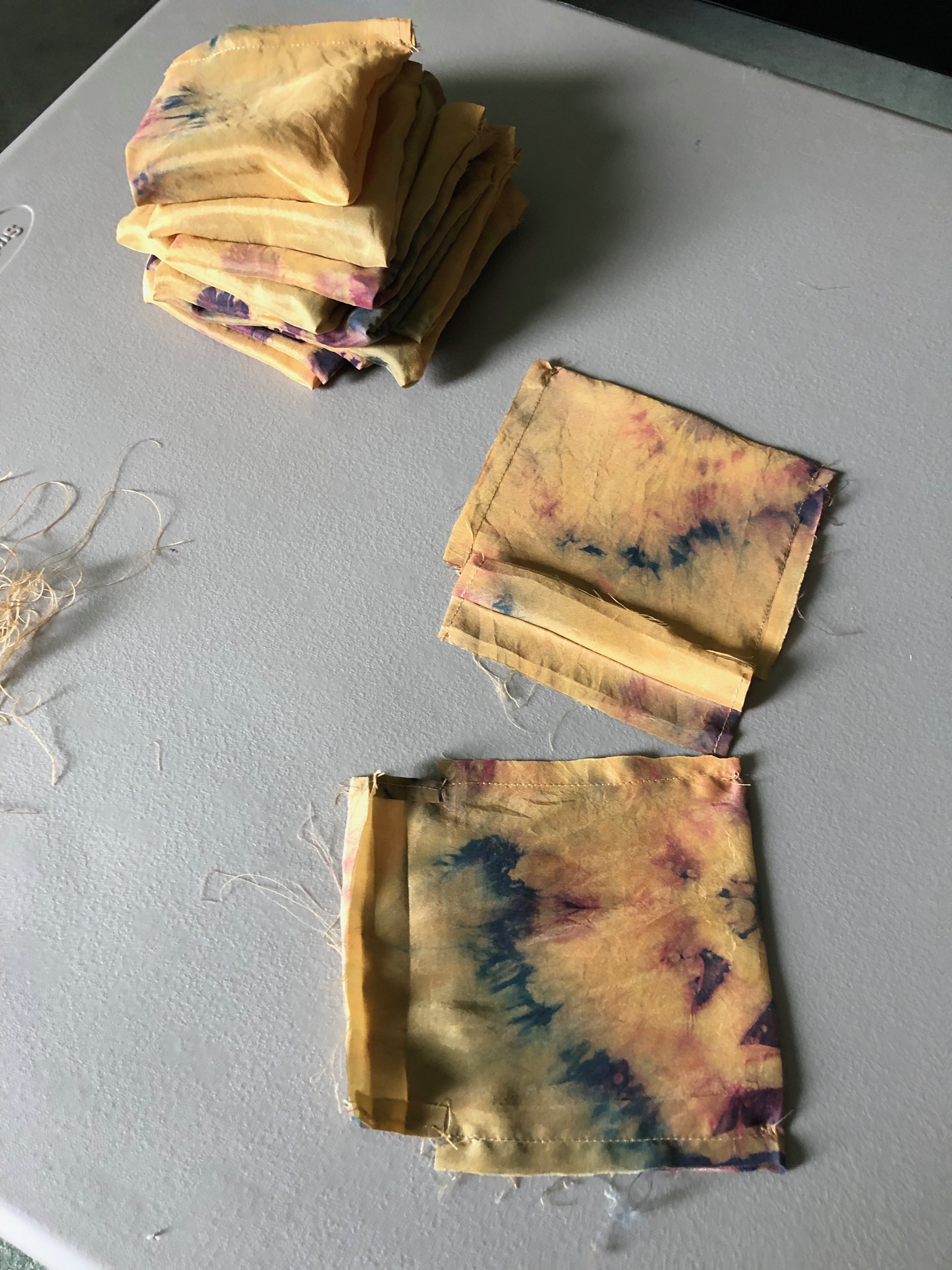 Quick little project that spans six years. I can't believe it's been six years since Dave and I travelled to Milwaukee, WI to attend 2016 HGA Convergence. These bags were made from the naturally silk Shibori scarves I made during a seminar. They were dyed with Cochineal, Indigo, and something for the yellow/gold, which is escaping me at the moment.